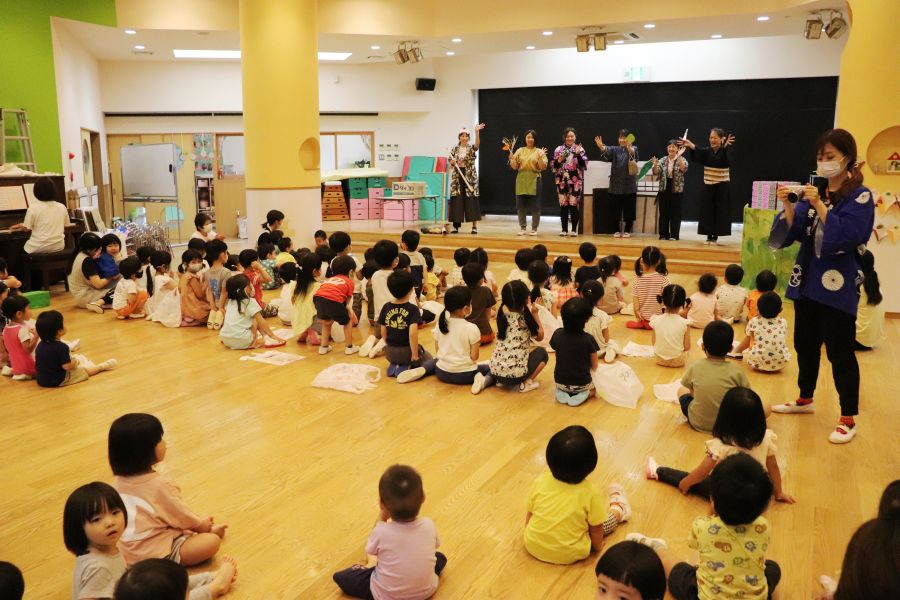 お店の他にも、職員劇の「わらしべちょうじゃ」をホールで見ましたよ。