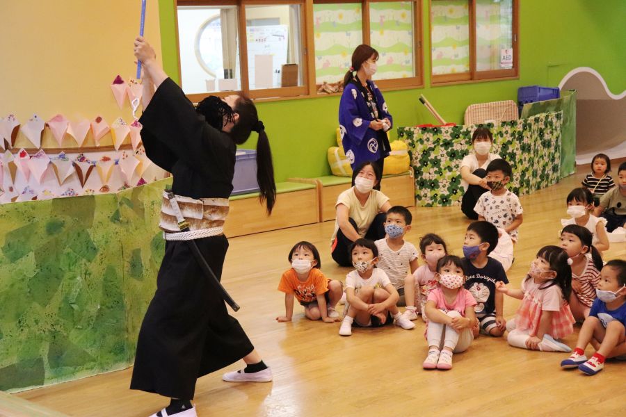 小さいクラスのお友達がお店にやってくると、屈んで目線を合わせて優しく教えてあげたり、手をそえて一緒にやってあげたりと、お兄さんお姉さんになった姿を見せてくれました。
